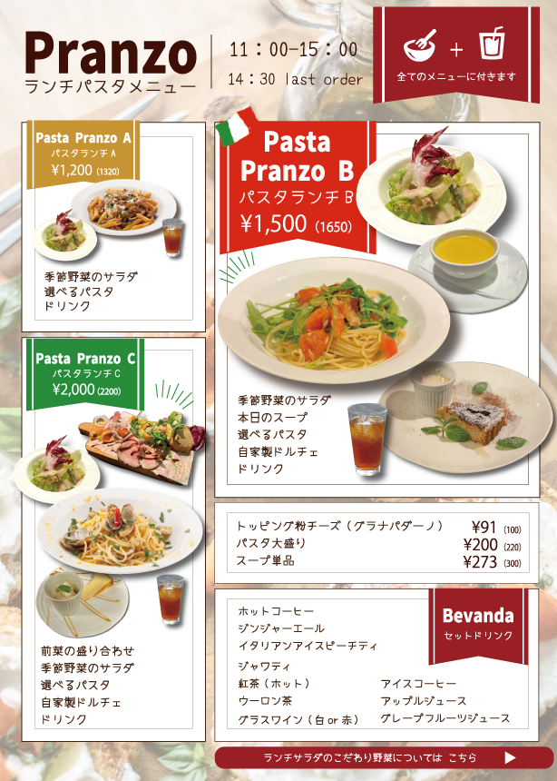 Pasta-pranzo A-パスタランチA- ¥1,200 (税込¥1,320)