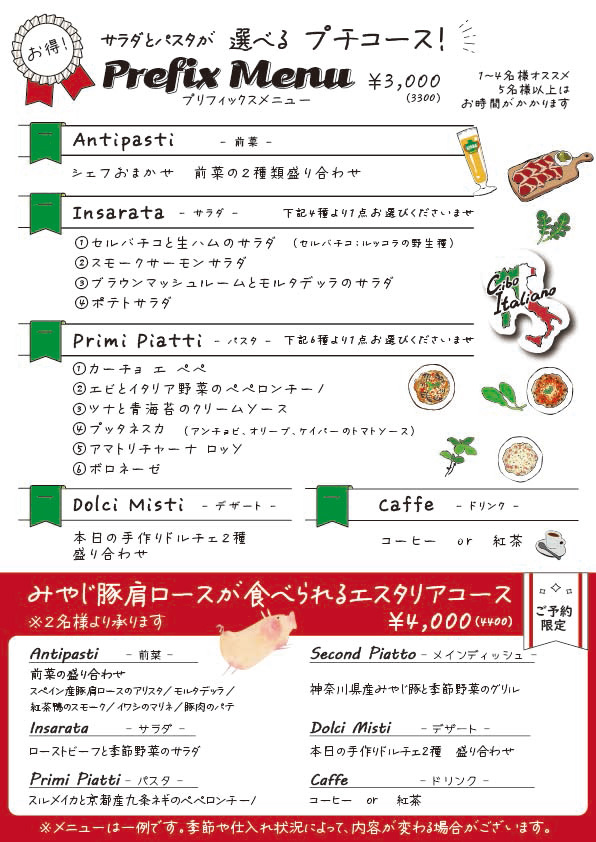 限定メニューもございますので、お気軽にスタッフへお声かけくださいませ。