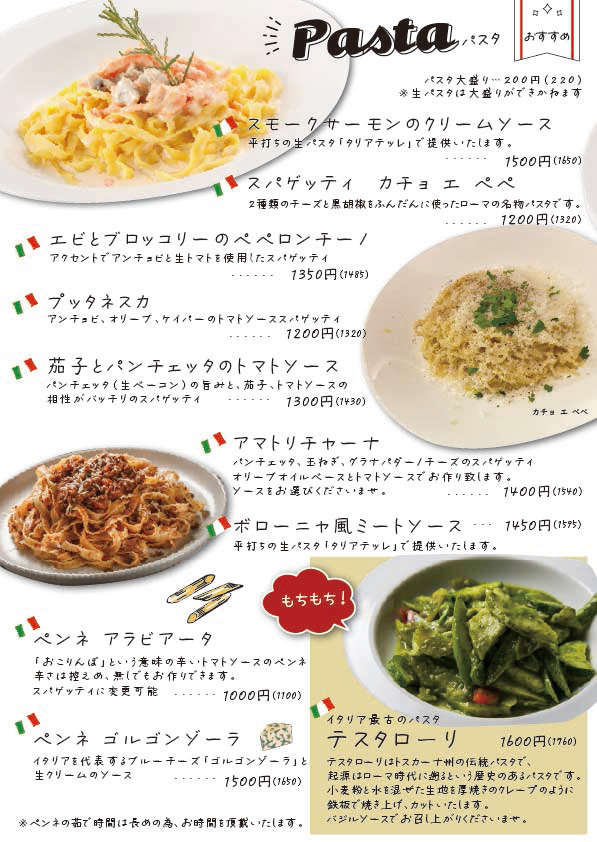 - パスタ(本日のパスタよりお選びくださいませ)