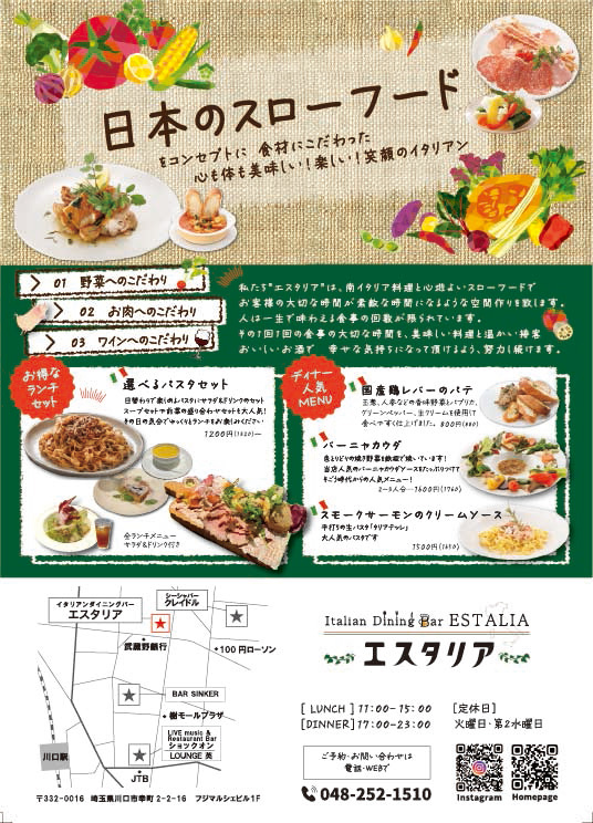 私たち"エスタリア"は、南イタリア料理と心地よいスローフードで
